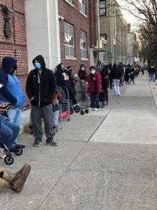 Concurrent with the press conference, community members in need lined up to receive food boxes which contained all the trimming for a nutritious Thanksgiving meal, as well as additional meals for the week. Food was handed out on a first-come, first-served basis from 7:30 a.m. until just after 1:00 p.m.