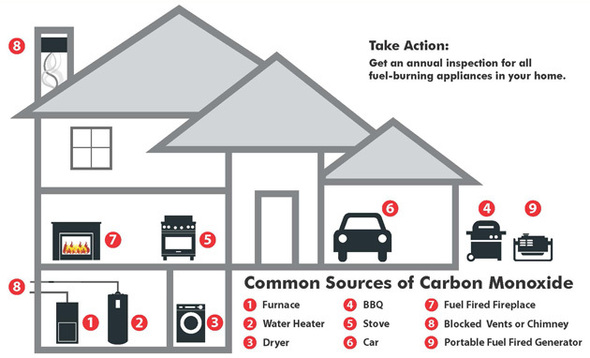 CO can be caused by malfunctioning heating systems or appliances as well as damaged or blocked vents and chimneys. CO is a colorless, odorless, poisonous gas that is a by-product of the incomplete combustion of fuels such as wood, charcoal, gasoline, kerosene, oil, natural gas, and propane.