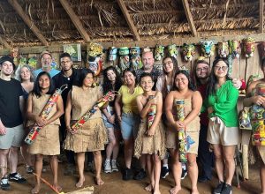 The idea for the project began a year earlier when Malone and art professor Kristen T. Woodward traveled to Costa Rica to take part in a faculty-led study abroad ecology course through Albright’s biology department. During that trip, Angelica’s organization was invited by Israel Mesen, the founder of Camaquiri Research Initiative, to complete this project. Camaquiri Research Initiative is a non-profit organization that aims to preserve biodiversity and promote sustainable development through scientific research and community-based conservation in Costa Rica. Upon returning to Albright, Malone, and Woodward immediately started planning the project. They partnered with faculty Michael L. Miller of the art department on mural design and fashion design professor MeeAe Oh-Ranck on fundraising. In addition to Malone and Console, students making the trip to Costa Rica included Brandom Hernandez-Ruiz ’23, Katie Ayala Hernandez ’24, Anthony Ortiz-Santana ’25, and Zachary Malmstrom ’23.