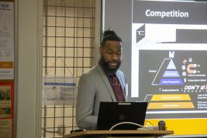 Theron Cook, founder of Don’t Quit, a startup that helps business owners connect to culture with visual language communications systems and strategy, presents his startup pitch during the Berks LaunchBox’s pitch competition in October 2022. Credit: Berks LaunchBox. All Rights Reserved.
