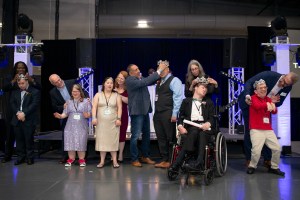 One hundred sixty honored guests were present in person, and 15 tuned in to experience the event virtually, along with 210 parents and caregivers. Every guest received hair and makeup services, shoe-shining, limousine rides, corsages, and boutonnieres upon arrival, courtesy of the volunteers and event sponsors. The guests entered on the red carpet and received a catered dinner before heading to the dance floor, where additional “buddy” volunteers met them.