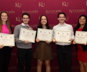 Kutztown University presented the Chambliss Student Academic Achievement Awards to six accomplished students on Friday, April 5. Students who received awards were nominated by staff and faculty members for meeting one or more of the six areas of achievement: successfully completed research projects, high-quality original artwork, high-quality artistic performances (music, chorus, drama, etc.), original writing in literature or meritorious writing in other fields, noteworthy achievements in athletics, and outstanding service to the KU community.