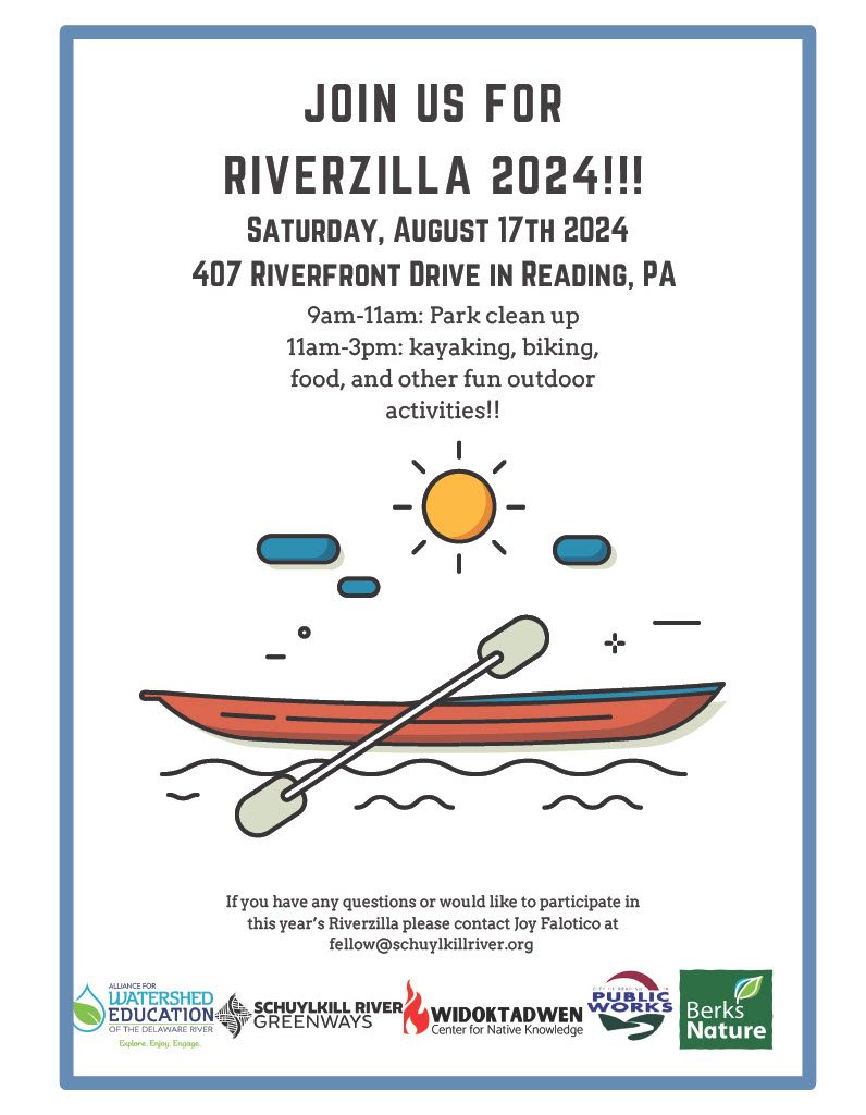 This free, family-friendly event is a collaboration between the City of Reading Public Works Department, Schuylkill River Greenways, Berks Nature, Widoktadwen Center for Native Knowledge, and Take It Outdoors.