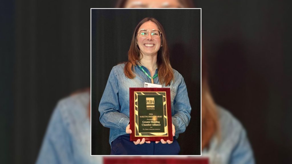 The Greater Reading Chamber Alliance (GRCA) is pleased to announce it was recognized by the Pennsylvania Economic Development Association (PEDA) as the winner of the Economic Development Marketing Innovation Award for its talent attraction marketing campaign. The award was formally announced last week during the 2024 PEDA Fall Conference.