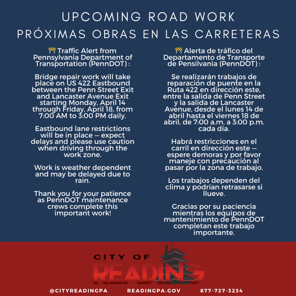The City of Reading encourages drivers to plan ahead and thanks the public for their patience during this PennDOT project.
