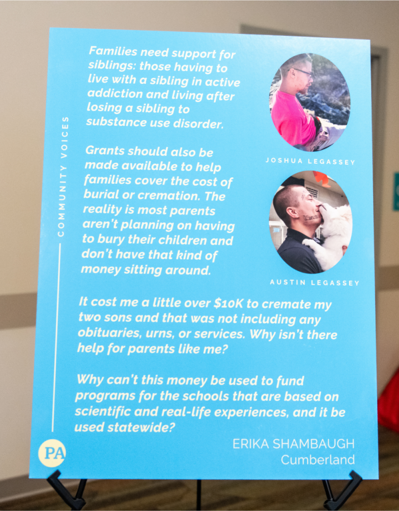 Other attendees offered similar feedback, highlighting how much they valued the personal stories, the open line of communication, and insight from other community members. Carla Sofronski, executive director of the PA Harm Reduction Network, said she left the event “feeling motivated and thinking of more ways to collaborate.”