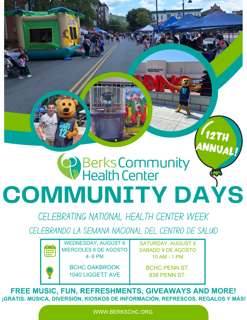 National Health Center Week runs from Sunday, Aug. 3, to Saturday, Aug. 9, and celebrates America’s over 1,400 community health centers. Berks Community Health Center (BCHC) will celebrate the week with two free Community Day events.