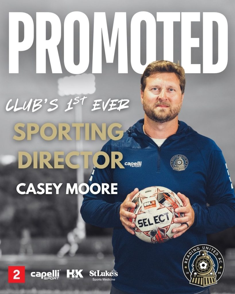 Reading United AC is proud to announce Casey Moore as the club’s first-ever Sporting Director. Moore’s transition from USL2 Head Coach to Sporting Director will help shape Reading United’s long-term vision, player development strategy, and recruitment process across all Reading United teams — USL2, WPSL, USL Academy, and its reserve squads.