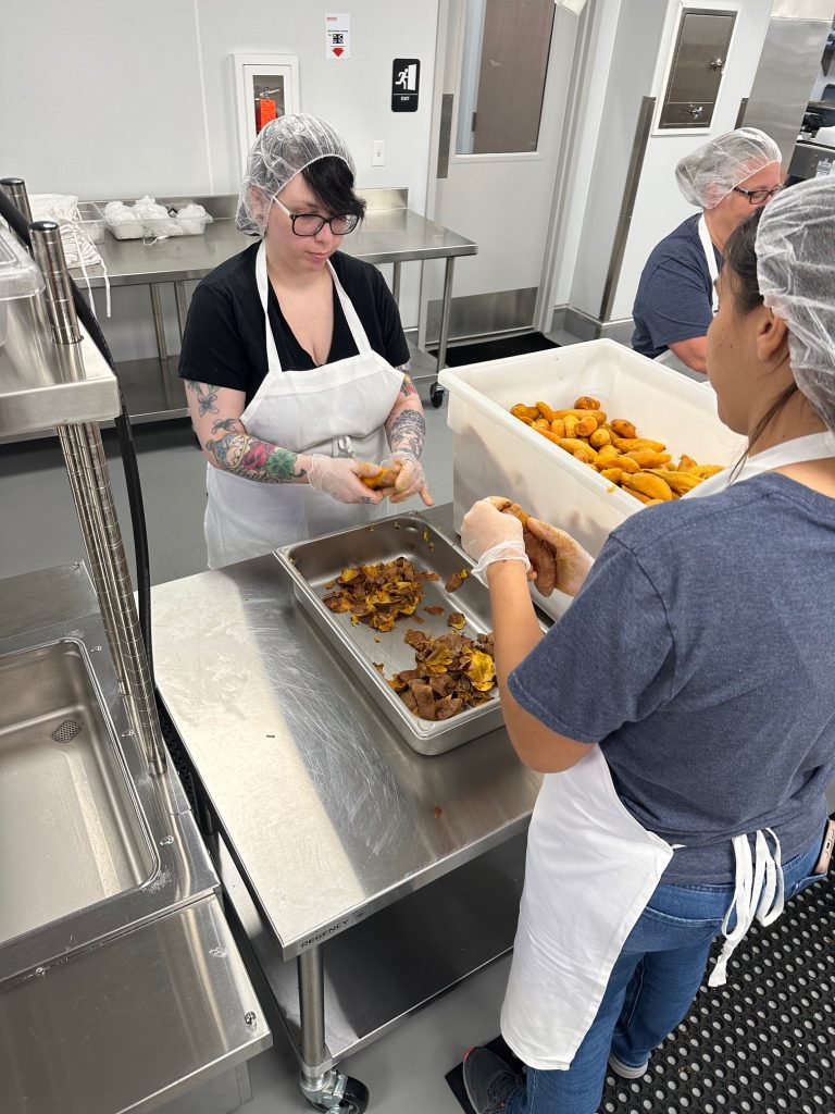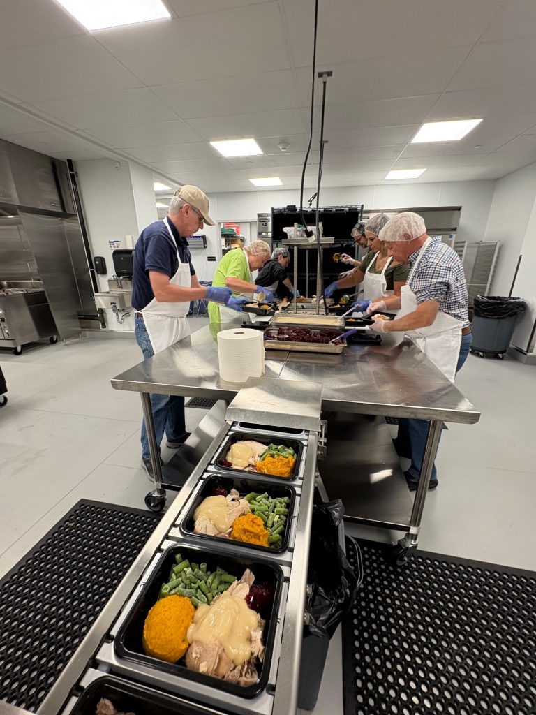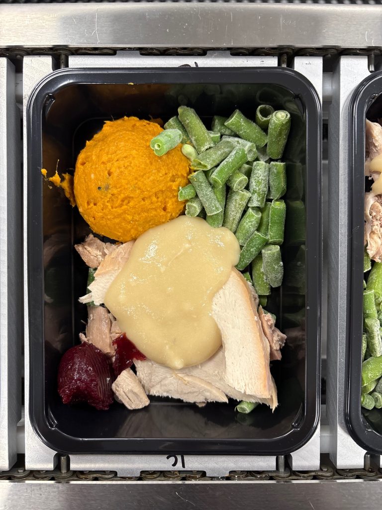 The menu for the heat-and-eat-ready meals — featuring smoked turkey with house-made gravy, sweet potato mash, green beans, and cranberry sauce — was created by the Community Kitchen’s culinary team, chefs Melanie Galarza, George Adams, and Chris Kochel. Meals were prepared and assembled by the chefs, staff, and volunteers over the course of October.