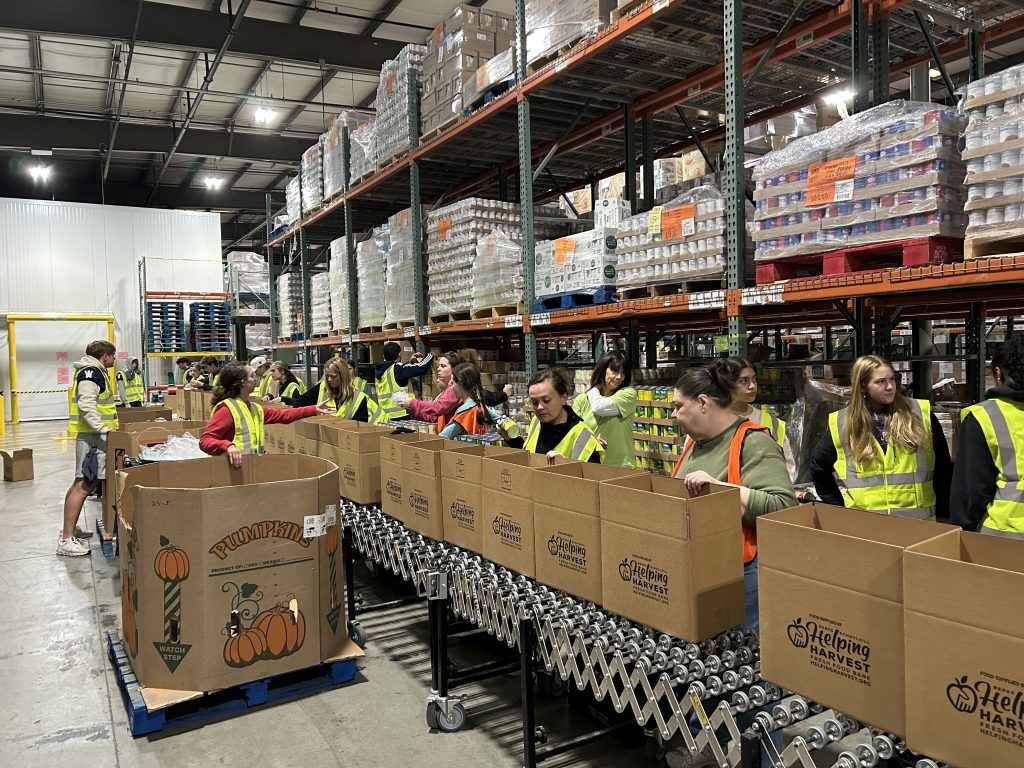 Pictured above: Volunteers pack Thanksgiving boxes at the Helping Harvest warehouse on Saturday, Oct. 25.