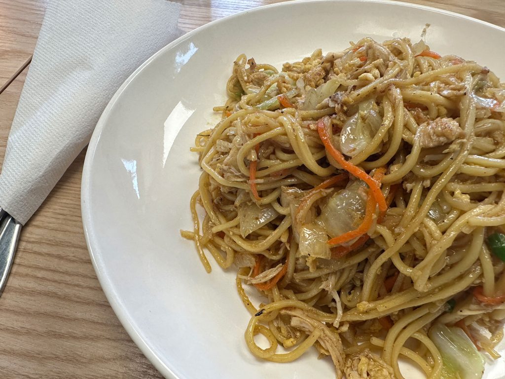Wanting to do something different, I opted for the yaki soba (lo mein) with chicken. The egg noodles were thinner than a lot of lo mein that I have had in other places. They were stir-fried with onions, carrots, and shredded chicken in soy sauce.