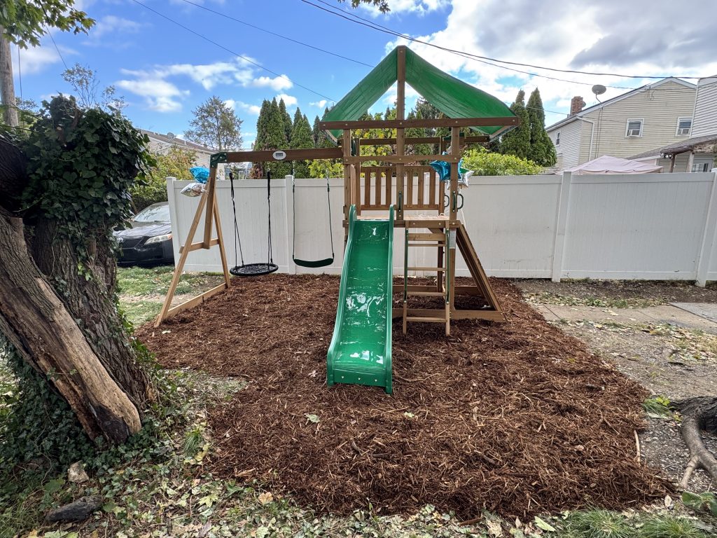 Anewalt’s Landscape Contracting also generously volunteered their services, mulching the play area to create a soft, safe, and welcoming space for the child to enjoy.