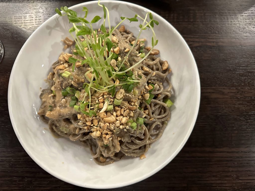 I had the umami bomb pasta — a mushroom-infused pasta dish with miso cashew cream, while Julie had the coho salmon. It was absolutely excellent, and while the gray-tint of the pasta didn’t make it the most appealing visually, the earthiness of the mushrooms combined with the nutty sweetness of the miso cashew was so good.