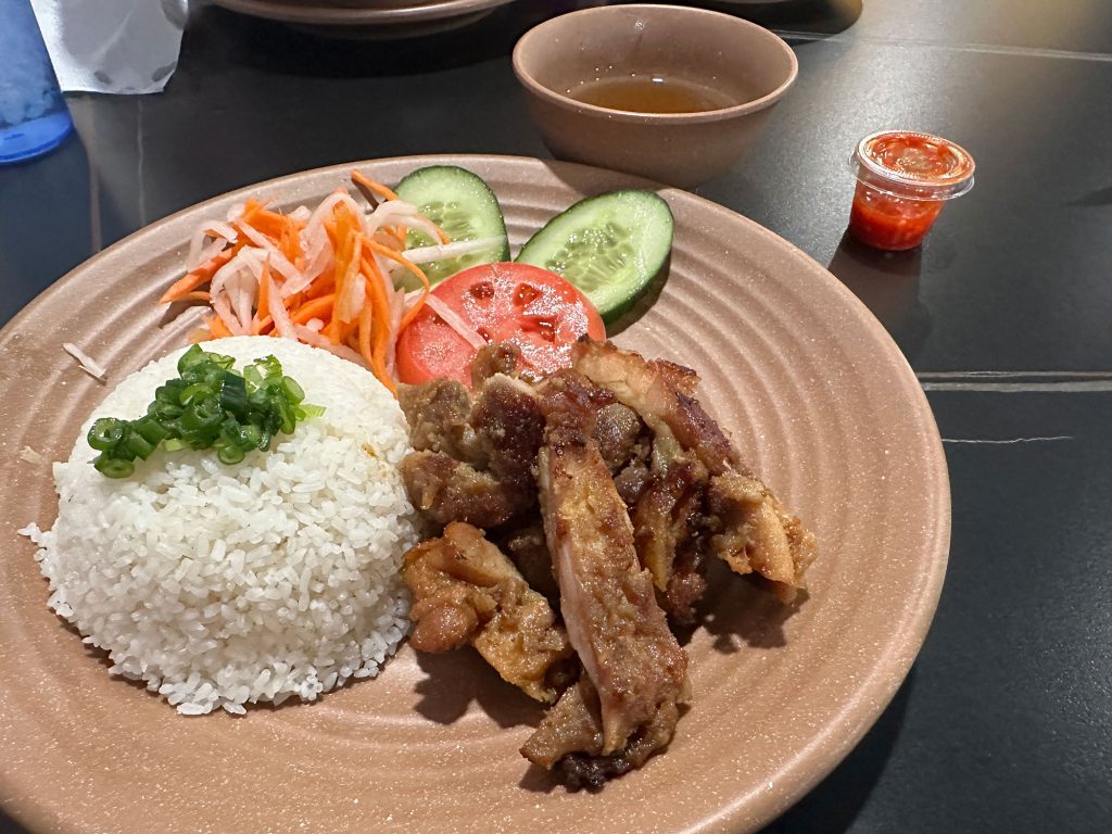 I was in the mood for a rice dinner, so I ordered a broken rice platter with grilled honey chicken.