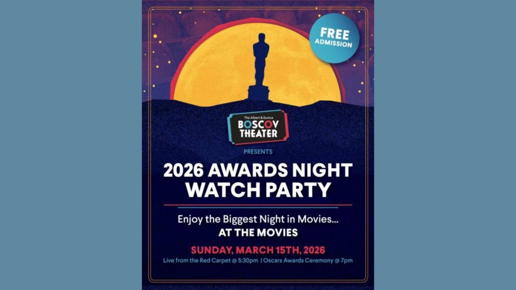 Trade your living room for the big screen at The Boscov Theater’s third annual Awards Night Watch Party on Sunday, March 15. This free community event offers a grand-scale viewing experience for film’s most prestigious night.