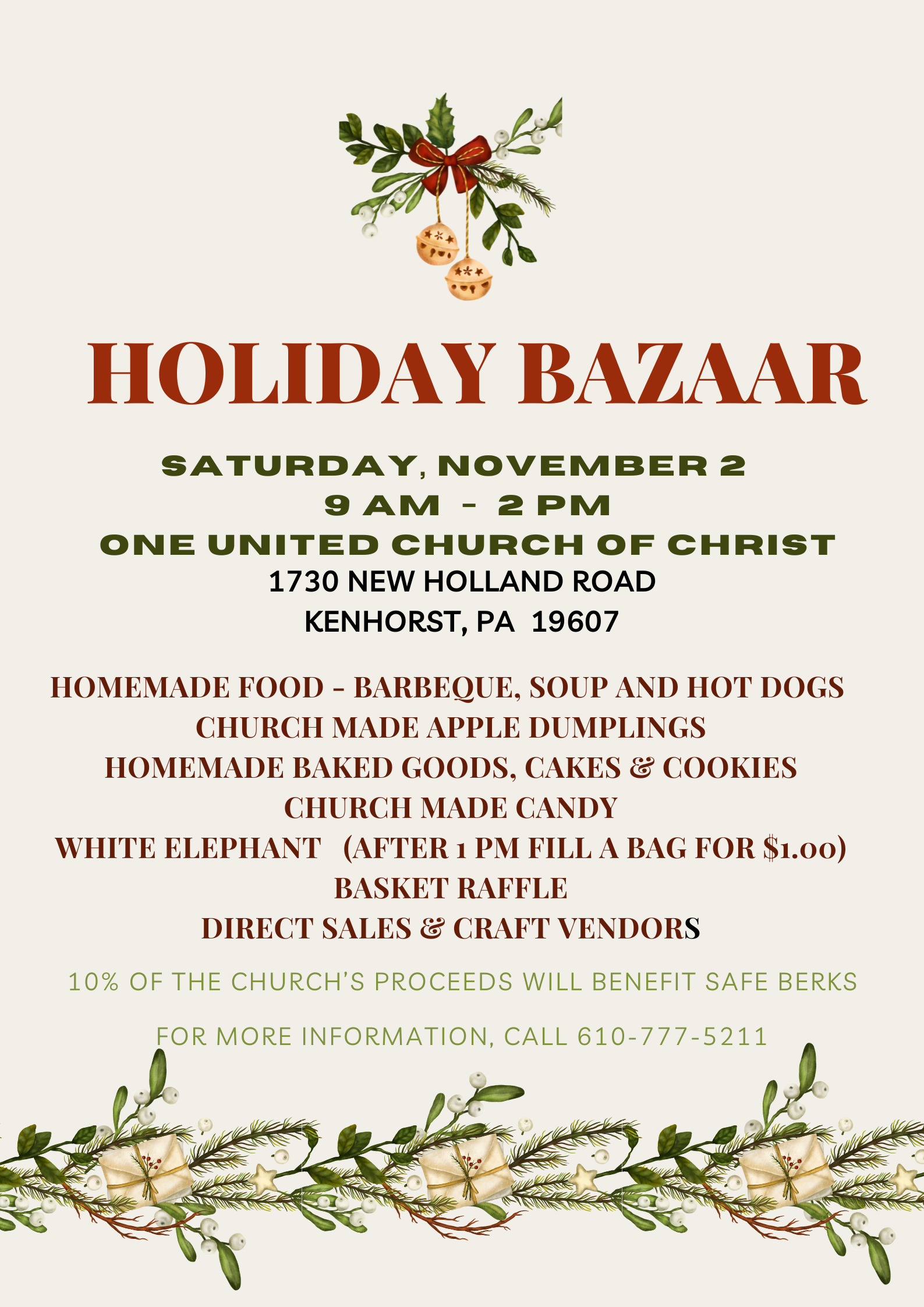 Holiday Craft Bazaar, Saturday, November 1, 2025, 9 am – 2 pm