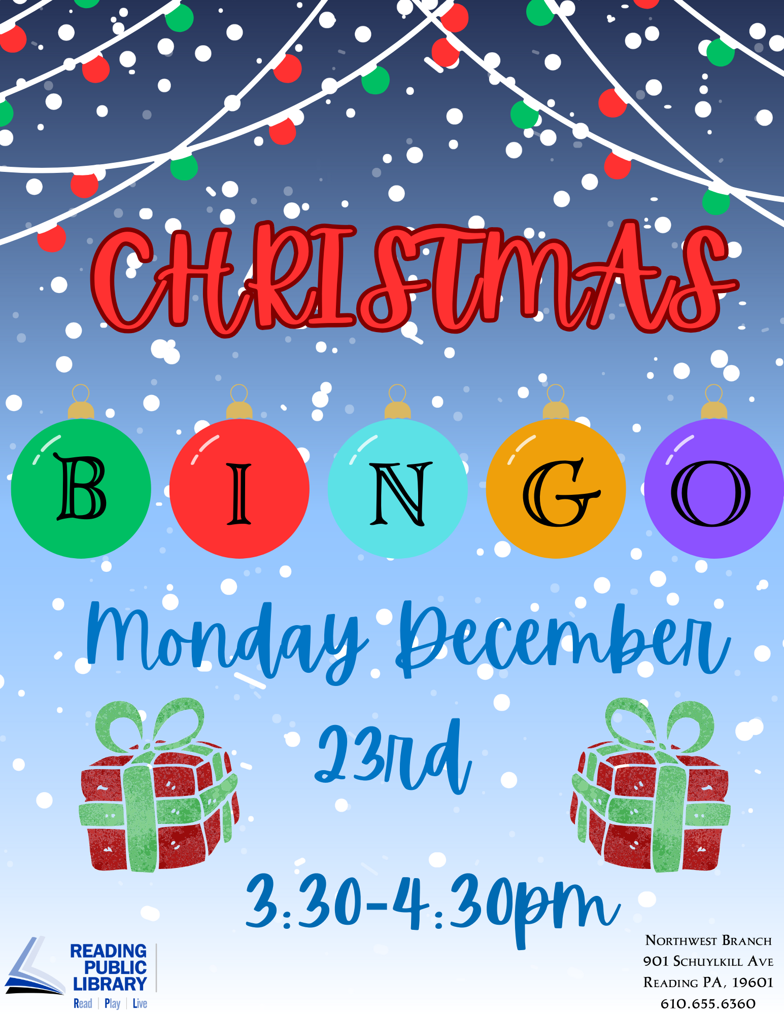 Join us on "Christmas Eve Eve" for a free kids' Christmas Bingo at RPL Northwest Branch!