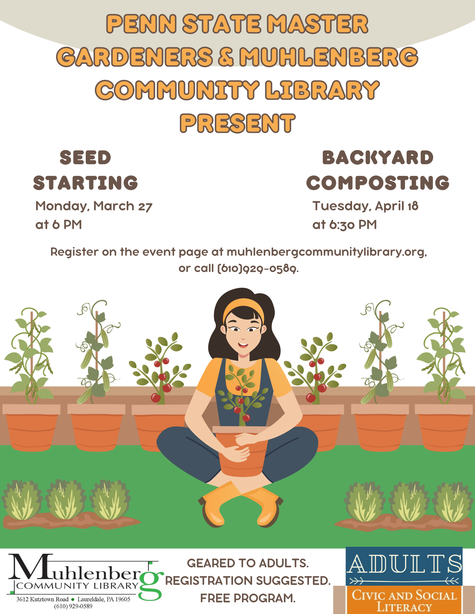 Let's do our part! Get started or learn more about backyard composting. This program is geared to adults and is presented by the Penn State Extension's Master Gardener program. The presentation lasts approximately 45 minutes with time for Q&A afterwards. Free to attend. Adults, 18+. Registration is suggested to reserve your space. Register at https://docs.google.com/forms/d/e/1FAIpQLSc3gKKKzPaRiXFdQMyhIhNN-w8VHBRqZrUadHkSxc1gpTP4xw/viewform […]