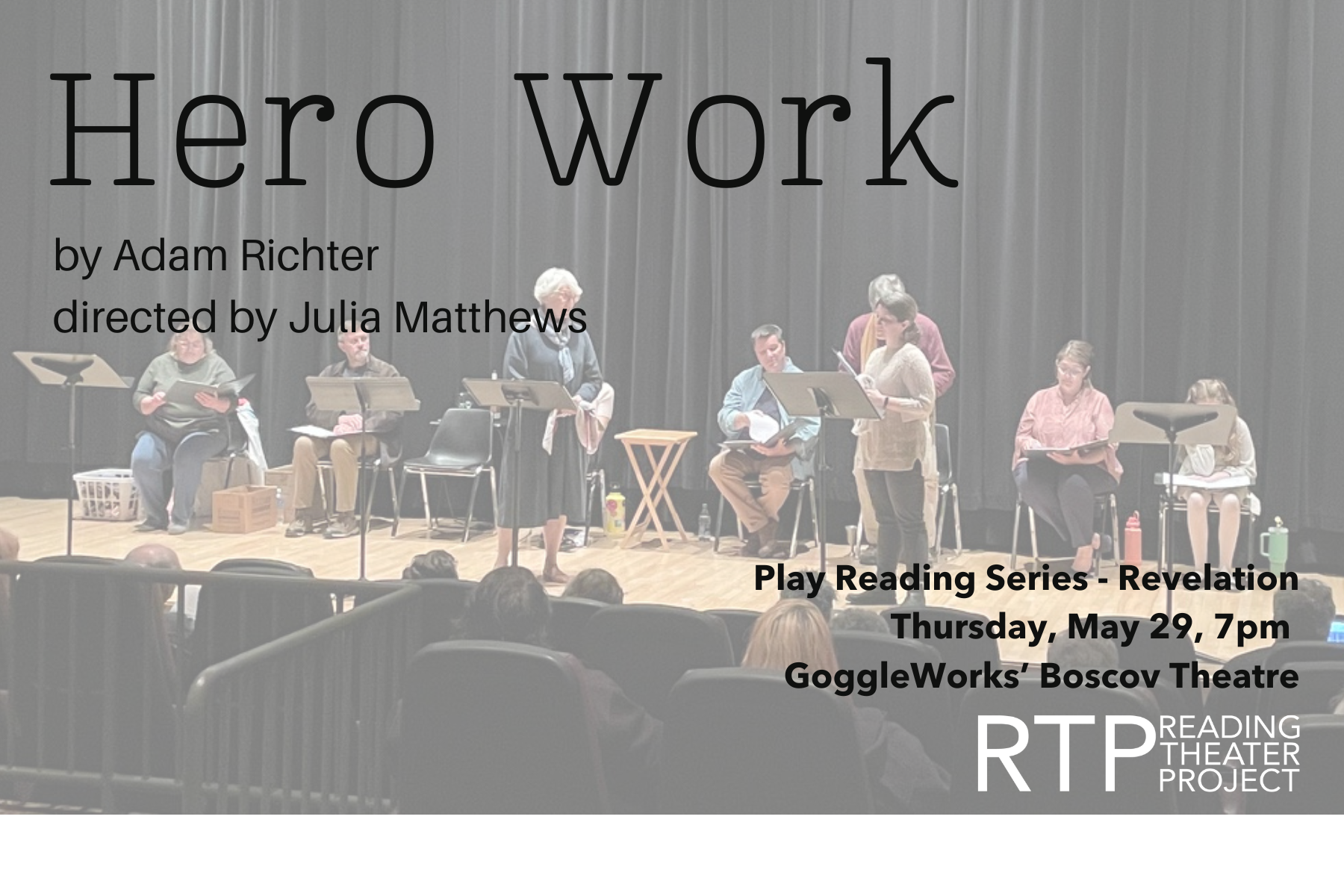 The Reading Theater Project is pleased to present Hero Work by Adam Richter, the final staged reading in the Play Reading Series: Revelation. The reading will take place Thursday, May 29, 2025, 7pm at GoggleWorks Center for the Arts’ Boscov Theatre, 200 Washington Street, Reading, Pa. Free parking is available behind the building.