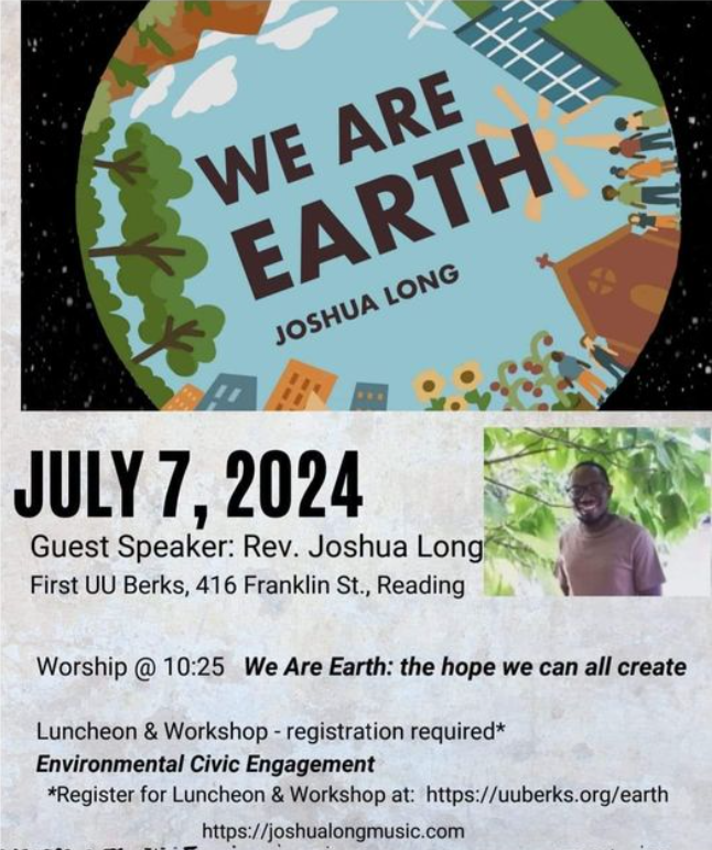 First Unitarian Universalist Church, 416 Franklin Street, Reading, invites all to "We Are Earth: Creating Hope" with Rev. Joshua Long on July 7th, 10:25 a.m. Livestreaming on https://uuberks.org/zoom-worship. Rev. Long, […]