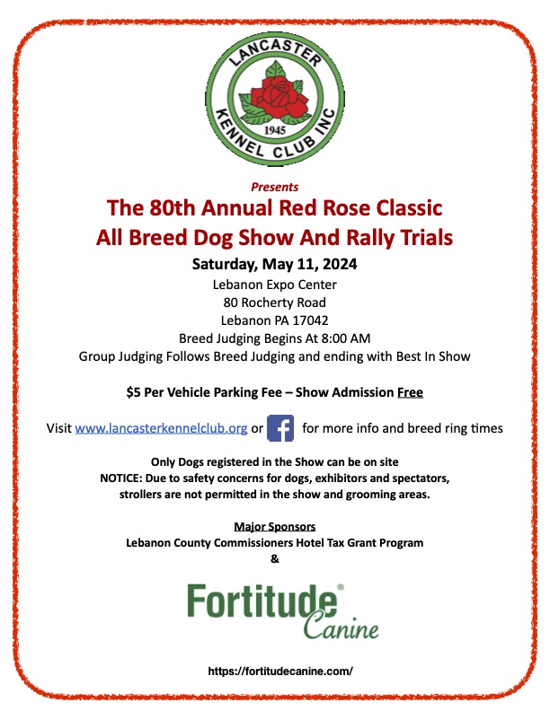 Who will win Best In Show at Lancaster Kennel Club’s 80th Annual Red Rose Classic All Breed Dog Show and Rally Trials on Saturday, May 11, 2024? Come to the Lebanon Expo Center, 80 Rocherty Road, Lebanon to find out. Admission to the show is free but there is a $ 5 per vehicle parking […]